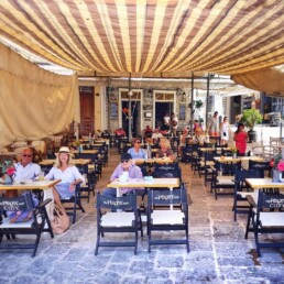 During the day, friendly Wendy and Takis and their kids run this café with first-rate coffee, some of the island’s most delicious breakfasts and home-cooked lunches (9am to 5pm), then morph it into a raging party place at night. Music changes with the crowd and the mood.Lovely Planet